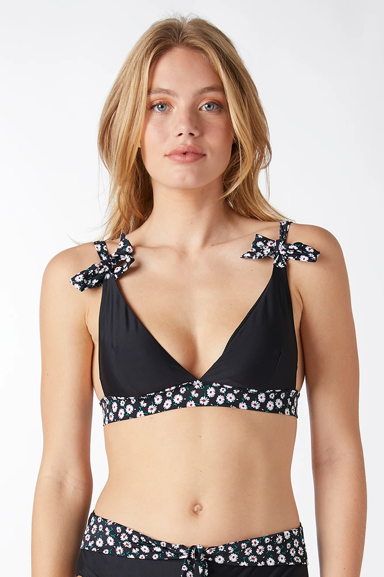 Le haut de maillot de bain "PARADIS" arbore une silhouette Haut triangle flatteuse, soulignant délicatement la poitrine tout en offrant un maintien optimal. Fabriqué dans une microfibre unie et imprimée Marguerite, il évoque le charme enivrant des jardins fleuris de la Riviera française, où Bardot elle-même a captivé les regards avec son allure élégante et naturelle.